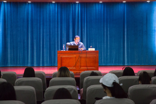 11月15日下午,我校韩语系主任金钟太教授在四号楼四楼报告厅为韩语系与日语系大一学生讲授“中国系列”思政选修课程《开放中国》第五课:《“一带一路”和韩国“新北方政策”》。讲座由思政教学部主任沈李主持。