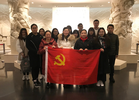 12月8日,雪花飘飘,在入冬以来第一场雪飘落的时候,欧洲语言文化学院学生党支部的党员同志集体参观了四行仓库抗战纪念馆。