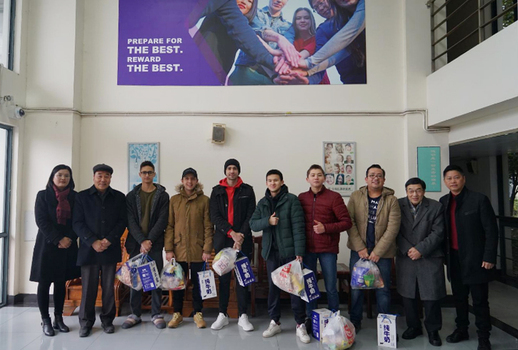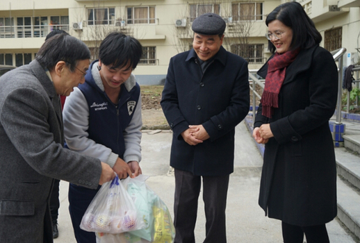 2月5日,大年初一上午,学校常务副校长毛忠明,党委书记朱南勤在工会主席、后保处处长张永生和学生处处长陈瑜的陪同下,代表学校董事会和党政领导班子,亲切看望慰问了假期里仍坚守工作岗位的后勤、保卫一线职工,寒假留校学生和留学生,向他们致以新春的祝福和诚挚的问候,并发放慰问品。