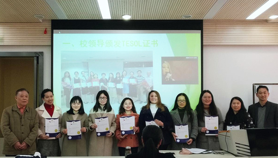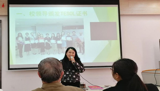 随后,张妍一、吴雅、司梦琪、黎妮、郭勤、丁慧敏、陈莹、陈诚等八位获得证书的教师,依次进行了TESOL培训项目的经验分享。各自对培训中的课程设置、教学内容、迷你课堂教学、马来西亚的文化习俗、旅行见闻等等进行了内容详实、绘声绘色的描述。陈诚副院长用“心怀感恩,收获颇丰”八个字概括了TESOL培训带给她的感受,也道出了所有其他参加此次培训教师的心声。