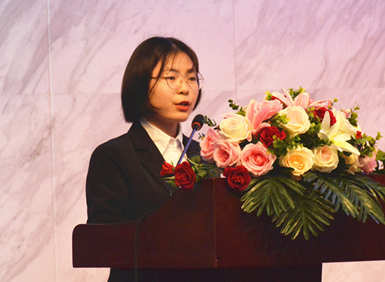 东方语言文化学院韩语1703班杨宾慧同学作为优秀学员代表发言,她表示要做好三件事,一是向书本学习,二是向党员学习,三是用实践学习。希望同学们认真学习,争取以优异的成绩从党校结业,以榜样的作用带动他人,为学校优秀学风建设贡献一份力量。