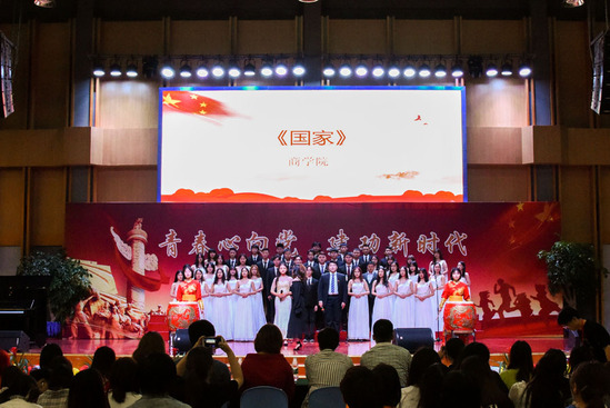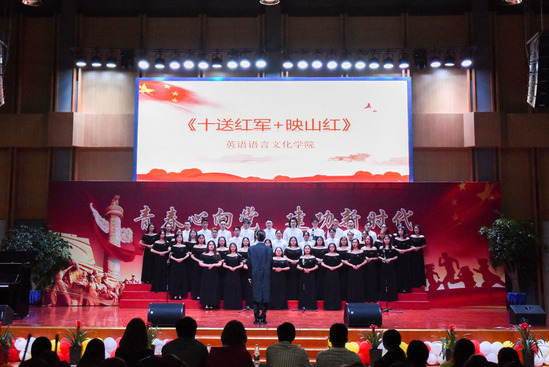 商学院以一曲深情的《国家》,拉开了此次歌会的序幕;英语语言文化学院演唱的《十送红军+映山红》,让我们看到了红军与人民的鱼水情深;新媒体与文法学院以一首气势磅礴的《保卫黄河》,唱出了中华民族屹立在世界民族之林的不屈脊梁;无论身处何方,我们都是中华儿女,创意设计学院演唱的《我的中国心》,再一次激发了我们心中对祖国母亲的无限爱恋;智能制造与信息工程学院的歌曲《我爱你,中国》抒发了作为中华儿女的自豪感;欧洲语言文化学院的《长城谣》,娓娓道来、深情款款,提醒我们不要忘记那段苦难的民族历史;东方语言文化学院以一曲《我和我的祖国》真切地表达了对祖国母亲的爱,将此次歌会推向了高潮。