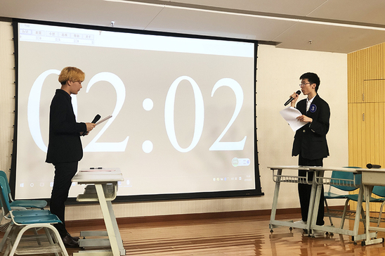 本次比赛共评出特等奖1组,一等奖1组,二等奖2组,三等奖6组,“最佳辩手”1名。其中,廖天翼、商晓彤、周芸雯三位同学组成的队伍获得特等奖。而廖天翼与彭畅则因票数相同进入加时赛角逐“最佳辩手”,巅峰对决引得台下观众掌声不断。最终,廖天翼同学获得“最佳辩手”称号。