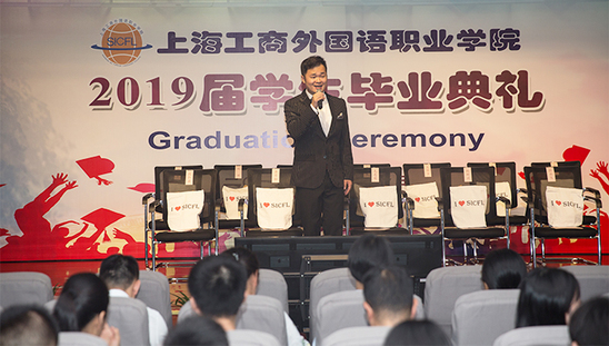 6月20日上午,上海工商外国语职业学院2019届学生毕业典礼在四百人报告厅隆重举行。常务副校长毛忠明,党委书记李月松,党委副书记、副校长段仁启,副校长林财兴,工会主席、后保处处长张永生,部分院系与处室负责人、教师代表、辅导员和2019届毕业生代表及部分毕业生家长欢聚一堂,共同参加了盛大隆重的毕业典礼。典礼由学生处处长陈瑜主持。