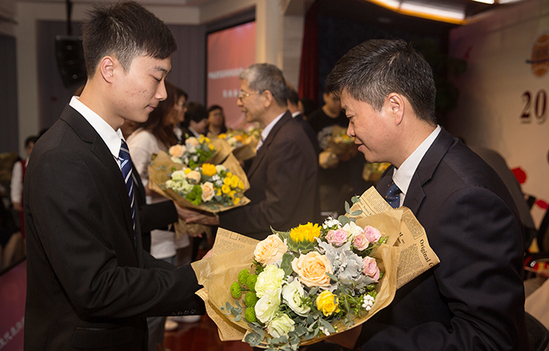 接着,由毕业生代表向学校教师、教工代表敬献鲜花,感谢老师们三年所给予的关爱和照顾!
