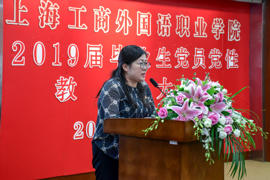 智能制造与信息工程学院机电1602班束瑜同学作为毕业生党员代表发言。她回顾了自己三年在我们工商外的学习生活,并总结了自己在思想、学习、工作、课余生活中所取得的成绩,并表达了对党组织、母校、各位老师的感谢之情。