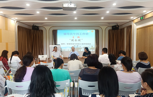 6月25日中午,由学校学生处主办的第十二期辅导员“午间工作坊”之“院长说”(第七期)在大学生活动中心辅导员工作坊如期举行,这也是本学期辅导员“午间工作坊”的收官之作。此次活动特邀请到智能制造与信息工程学院院长谈理教授作为主讲嘉宾。校党委副书记、副校长段仁启,学生处处长陈瑜,学生处副处长黄慧华,各二级学院学生工作负责人及全体辅导员共同参与了此次活动,活动由陈瑜主持。