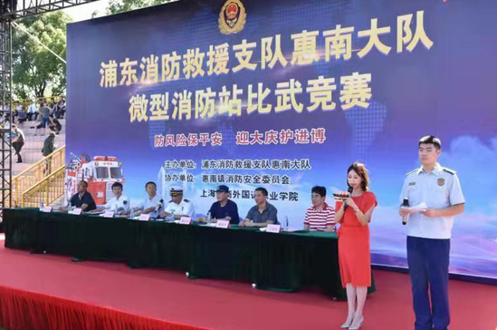 8月1日,中国人民解放军建军92周年之际,由浦东新区救援支队惠南大队主办,惠南镇消防安全委员会、上海工商外国语职业学院协办的2019年微型消防站比武竞赛在我校隆重开幕。