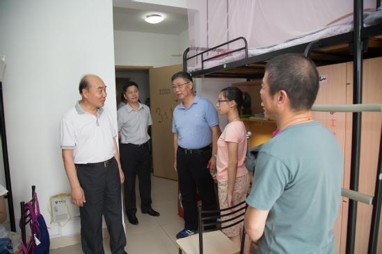 9日下午,校领导及中层干部还走访了学生公寓,热情地向大家问好,同学们脸上挂满了灿烂的笑容,公寓内弥漫着温馨而愉快的气氛。每走进一间新生宿舍,校领导都会仔细察看学生们的生活环境,与大家亲切交谈,询问同学们“来自哪里”“来到上海生活是否适应”,并叮嘱同学们如果在校遇到生活或学习上的困难,要及时向宿舍工作人员和辅导员老师反映,学校定会尽力满足同学们的需求,让同学们来到工商外就像在自己的家里一样温暖。慰问新生的过程中,校领导还实地察看了生活用水、洗衣房、卫生间等生活设施情况,并嘱咐后勤人员务必要加强安全隐患排查,为学生的安全保驾护航,为他们提供良好的学习生活环境。