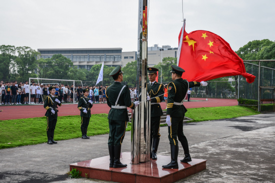 伴随着嘹亮的国歌声,五星红旗冉冉升起,上海工商外国语职业学院“小我融入大我,青春献给祖国”升国旗主题活动正式开始。