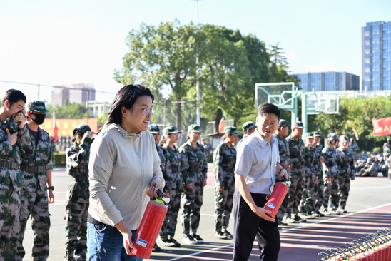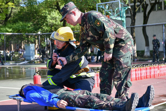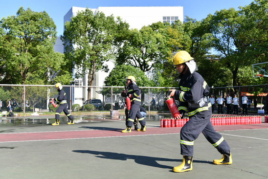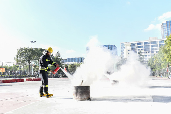 通过大学生平安志愿者(微型消防站义务消防员)对消防器材的使用教学和紧急救援的模拟演示,增强了新生对及时报警、高效疏散、安全逃生和紧急救援等环节的了解,为营造平安、文明校园奠定了坚实的基础。
