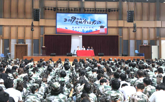9月18日下午,我校英语语言文化学院2019级专业介绍会在南区体育馆隆重举行。院长熊学亮教授、顾问陆效用教授、副院长陈诚副教授以及党总支书记申洪波出席大会。2019级辅导员及720名新生到场参加。会议由申洪波主持。
