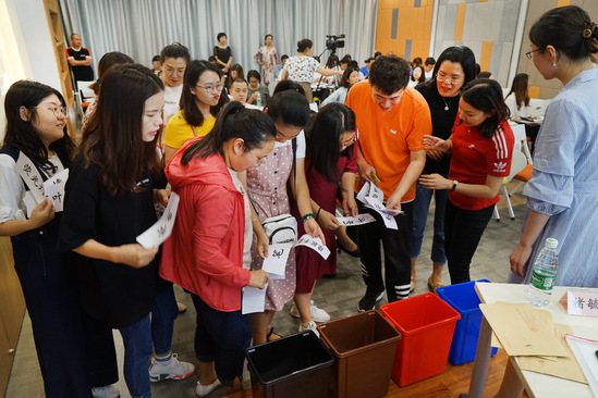 培训邀请到上海交通大学医学院后勤事业发展中心的蒋波主任主讲。蒋主任从“趣味相投”的垃圾投放游戏开始,让参训人员分为三组对纸片上的“垃圾”进行投放,大家边讨论、边查询,培训过程趣味十足。接着,蒋主任对大家投放的“垃圾”准确度一一进行解析。最后,蒋主任将交大医学院如何开展垃圾分类的经验作了介绍。