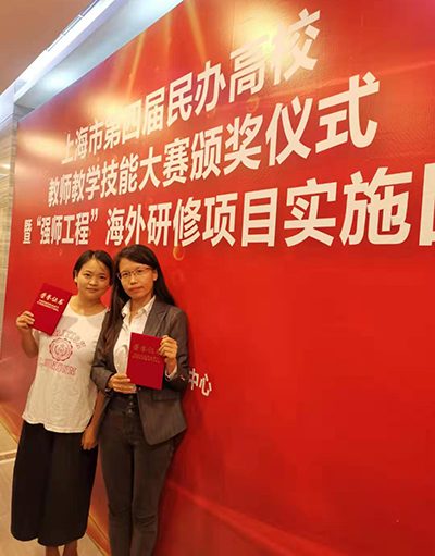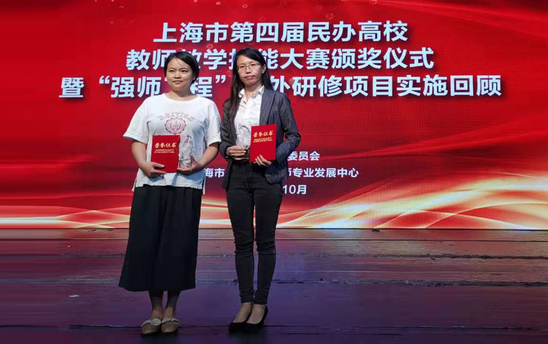本次大赛以推进民办高校教学改革、展示教师的课堂教学技能、选拔与培育优秀民办高校教师为宗旨,在总结发扬往届赛事经验成果的基础上,进一步挖掘课堂教学与教学竞技间的深度结合,更好地诠释“重实践、重教学”的比赛原则。本市 17所民办高校共有 97 名教师参加比赛, 经校内预选、初赛选拔、最终复赛、大赛评审委员会评审、大赛组委会审定等多项环节。我校和水英、郑筱筠两位老师获“上海市民办高校教师教学技能大赛”优胜奖。