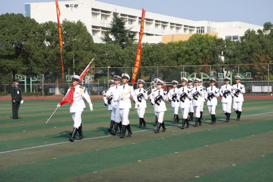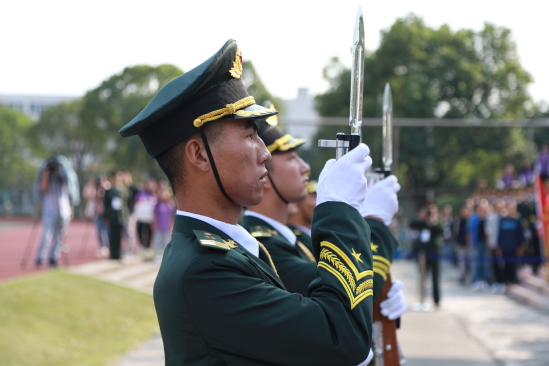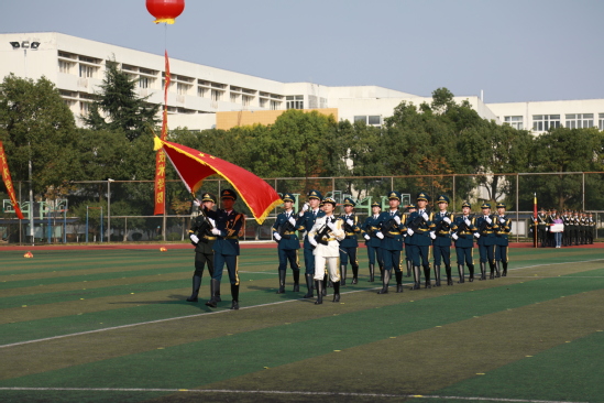 我校16名退伍士兵组成的国旗护卫队,本着“出场即震撼,亮相即精彩”的要求,退伍不褪色,艰苦训练,一个动作不满意就反复练,一个口号喊不响就反复喊,展示动作流畅,整齐划一,最终荣获一等奖的好成绩。