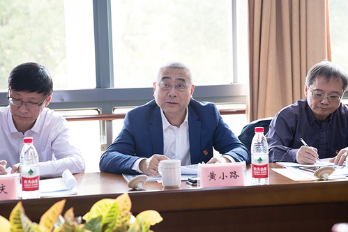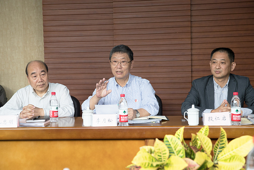 党委书记李月松简要介绍学校概况和办学特色,随后汇报学校“不忘初心、牢记使命”主题教育阶段工作情况。