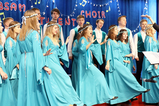 11月8日,白俄罗斯国立音乐学院合唱团来我校访问,并在四百人报告厅举行了精彩的合唱演出。莅临本次活动的嘉宾有明斯克文化局局长鲁济科娃·维塔莉娜·弗拉基米罗夫娜(Рудикова Виталина Владимировна)、欧洲语言文化学院院长虞龙发教授、国际教育学院院长兼外事处处长严庭国教授、戈梅利学院院长兼欧洲语言文化学院副院长王保士教授以及俄语系全体教师。报告厅内灯光璀璨,人声鼎沸,座无虚席。此次活动以多元多角度交流两国文化为主旨,以艺术形式加强两国情谊为核心,使得在场每一位同学及老师受益匪浅,也让本次活动意义深刻,同时也丰富了校园文化生活。