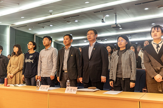 开班典礼开始之前,在场师生全体起立,高唱中华人民共和国国歌。