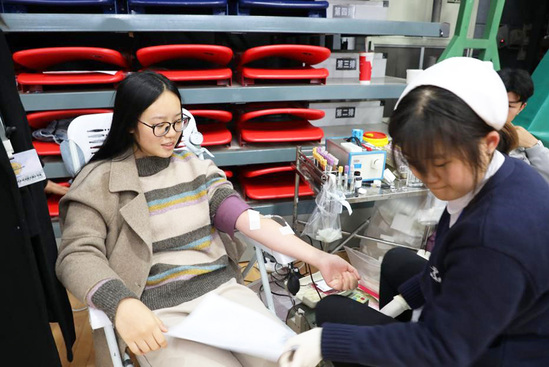 11月27日至11月28日,学校配合上海市教委、上海市卫生局、上海市血液中心管理办公室,在南校区体育馆内开展了主题为“用爱心为健康鼓劲,献热血为生命加油!”秋季无偿献血活动。