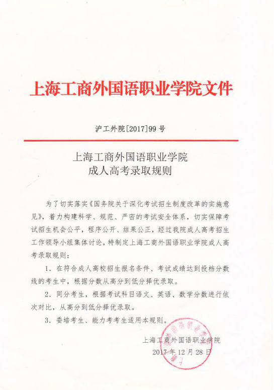 上海工商外国语职业学院成人高考录取规则