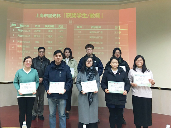 总结会上,首先由学校领导向荣获上海市星光计划第八届职业技能竞赛各奖项的师生颁发证书。接着,全国职业院校技能大赛(英语口语专业组)三等奖获得者洪吉媛同学代表全体参赛学生发言,作为上海赛区参加2019年全国职业院校技能大赛(英语口语专业组)的唯一选手,她讲述了如何在指导老师的悉心指导下,克服困难,准备比赛资料,开展赛前集训,展现了作为一名国赛选手的自信大方与专业素质;英语语言文化学院教师郑筱筠、商学院教师周琼琼分享了参加星光计划教师教学技能大赛的历程,勉励同学们找到适合自己发展的平台,珍惜机会,努力学习,并向同学们深情告白,“即便没有竞赛,没有获奖,依然热爱这三尺讲台,热爱这份教育事业”。学校协助分管教学工作的孙信伟教授向获奖师生表示祝贺,并勉励师生努力奋进,争取更多技能竞赛成果。