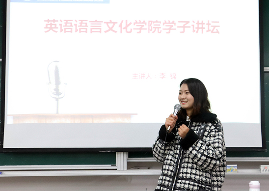 12月26日晚,英语语言文化学院“学子讲坛”第14期在13337教室再次开讲,上海市奖学金获得者英语1703班学生李锦以“把握青春,不让青春只有怀念”为主题分享了自己充实而又多元发展的大学生活。