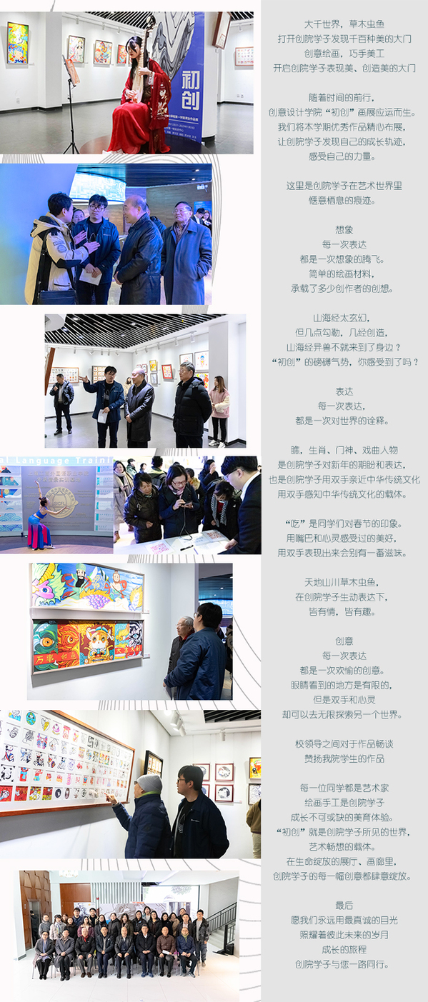 “初创”,寓意新生的力量和无限的可能。此次作品展历经近两个月的精心筹备、作品征集和布展布置,共汇集展出创意设计学院2019级大一平台课程本学期学生作品70幅,每一份作品都凝聚着师生敏思求索、灵感碰撞的成果。作品展通过呈现优秀学生作品,讲述青年学生创意理念,凝聚校园艺术力量,打造校园品牌文化。