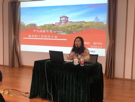 随后,上海学生事务中心资助管理部部长葛民作题为“不忘初心,筑梦前行,助每一个家庭经济困难的学生拥有出彩机会”的报告。葛老师引用习近平总书记的话语概括了高校资助工作的基本精神“精准资助,资助育人”,并从资助体系与原则、精准资助、资助育人及不忘初心四个方面进行阐释,让老师们对我国高校资助工作有了一个纵向的了解与横向的认知,通过葛老师的案例介绍与工作思路分析,老师们更加明确了资助工作的重大意义以及如何真正达到资助育人。