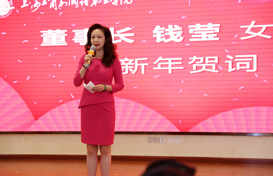 钱莹董事长首先致新春贺词,向各位老领导、老教授、老同志和辛勤工作在教育教学、管理服务一线的教职员工,向关心和支持学校发展的各界朋友,向为学校建设和壮大做出贡献者,致以衷心的感谢和新年的祝福。