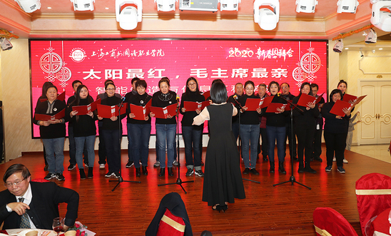 子年大有山河壮,甲岁丰盈日月新。1月8日晚,上海工商外国语职业学院2020年教职工迎新团拜会在润业大厦宴会厅隆重举行。董事长钱莹女士,学校历任老领导,常务副校长毛忠明,党委书记李月松,副书记、副校长段仁启,全体教职工以及集团公司和南科公司代表欢聚一堂,互致问候,畅叙情谊,共迎新春。