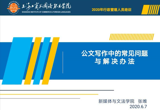 6月11日,新媒体与文法学院张唯副教授为学校全体行政管理人员作《公文写作中的常见问题与解决办法》专题讲座。全校100余名行政管理人员通过线上平台聆听讲座。