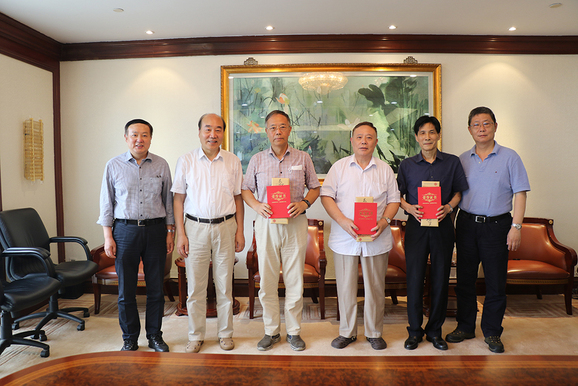 7月14日,学校于八号楼十楼会议室举办简朴而又温馨的欢送老同志座谈会,为二次光荣退休的英语语言文化学院顾问陆效用教授、英语语言文化学院院长熊学亮教授、后勤保卫处副处长孙宪国工程师授予荣誉证书。学校领导和部门负责人及代表参加会议。会议由副校长陈万里教授主持,常务副校长毛忠明教授致辞。