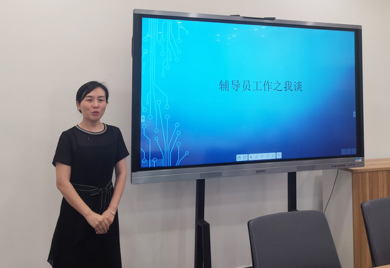 培训结束,我校分会场组织专题交流会,英语语言文化学院田一涵与欧洲语言文化学院刘晓燕基于短暂的辅导员工作经历做交流汇报,两位老师将工作体验与培训内容相结合,讲述自己的职业感悟与育人情怀,大家都深受鼓舞,也更加坚定做好辅导员的初心。