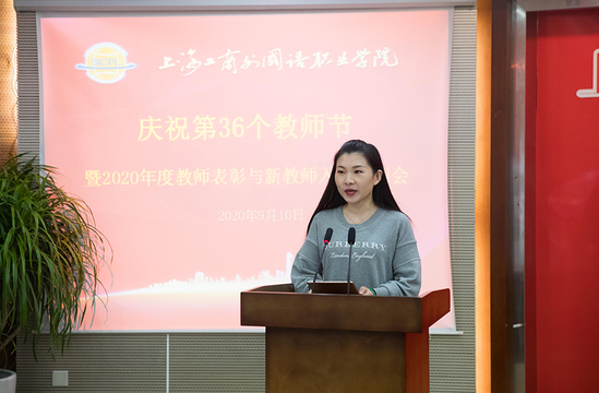 新媒体与文法学院学前教育专业教师左月明代表新教师发言,她表示,作为一名新教师,今后必将热爱并尊重自己的选择,立德立言、不惧风雨,让真知薪火相传,为成为一名优秀教师不断努力,为促进每一位学生卓越发展而不遗余力。