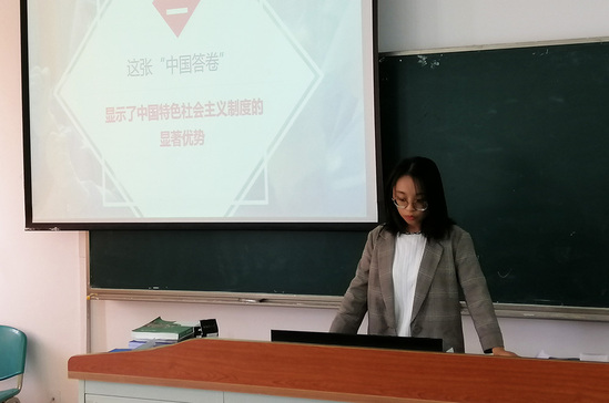 王青青老师从教学目的、教学意义以及教学重难点等几个方面对此次备课会进行展开,通过“四个讲清楚”给大家呈现了一个清晰的备课目标,并从中国共产党的坚强领导、中国特色社会主义的显著优势、中国人民坚韧奉献守望互助的民族精神、我国的治理体系和治理能力效能水平、改革开放以来积累的雄厚物质技术基础以及践行人类命运共同体理论的大国担当六个方面对本次课程内容进行了概述。同时,王老师根据课程内容,准备了大量的配套视频资源,可供学生们直观感受课程知识点内容,从而引发学生共情,提升课堂学习效果。