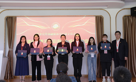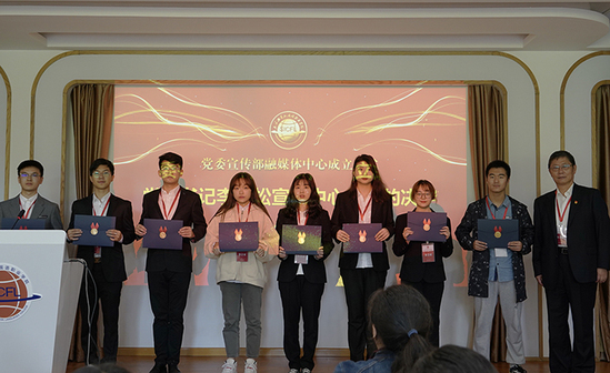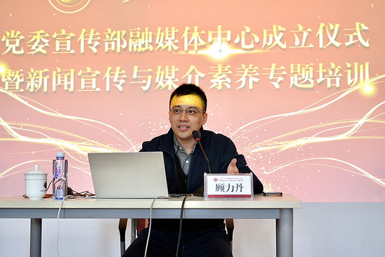 11月6日,我校党委宣传部融媒体中心成立仪式暨新闻宣传与媒介素养专题培训在大学生活动中心举行。党委书记李月松,党办校办、党委组织部、党委宣传部负责人,各党总支/直属支部书记,各二级学院教师通讯员、学生通讯员,以及党委宣传部融媒体中心学生成员出席仪式。党办校办主任傅建辉主持。