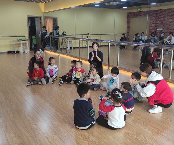 第二节是教师郑青在舞蹈房授课,通过将舞蹈、乐器、游戏相结合的方式引领孩子们在课上充分展现自我,学习舞蹈动作,掌握舞蹈节奏。