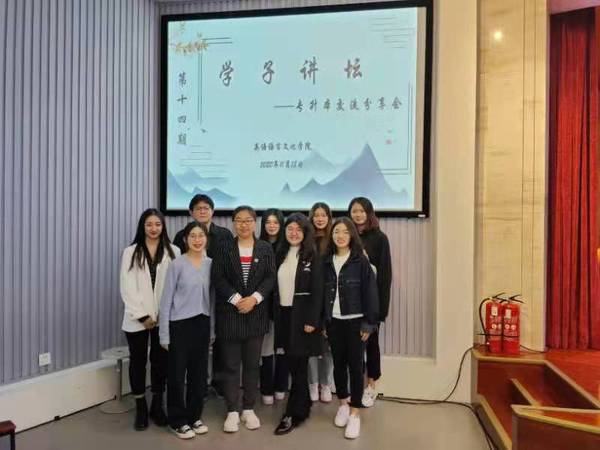 第十五期学子讲坛由2020级辅导员田一涵主持,英语语言文化学院副院长兼党总支书记申洪波、辅导员孟晶、辅导员顾亮以及有专升本意向的同学共同出席。