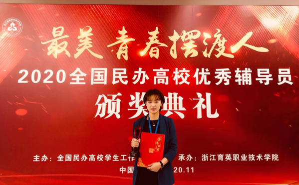 11月20日至22日,在杭州举办的第六届全国民办高校辅导员高峰论坛暨2020年全国民办高校优秀颁奖典礼上,我校东方语言文化学院周雯雯老师获2020全国民办高校优秀辅导员奖,同时以《社企联动助推语言类高职生就业的研究和探索——以工商外日语富士樱社团与理光公司为例》获论文三等奖。