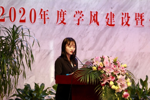 随后,来自欧洲语言文化学院的王艺璇同学作为国家奖学金获奖学生代表分享了她的学习心得。她详细地讲述着自己的大学生活规划,以“优秀是一种习惯”为勉励,不断将自己的规划变为现实。她说,从学校奖学金到国家奖学金,是对她不断求知的肯定,更是激励自己继续努力的动力。让她更加意识到,虽然人生不同阶段的奋斗目标有所不同,但奋斗却是永远不变的真理。