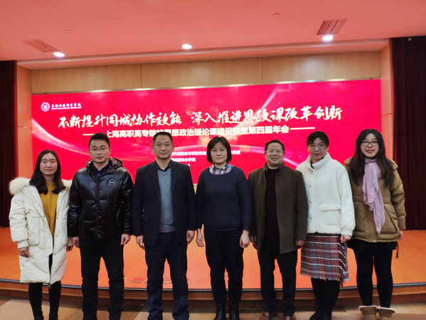 1月9日,上海高职高专院校思想政治理论课建设联盟第四届年会在上海青年管理干部学院顺利举行,我校党委副书记、副校长段仁启,思政教学部主任沈李,思政教学部副主任韩伟,全体思政课教师出席本次年会。