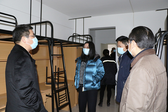 闵辉一行首先来到北校区学生宿舍,查看留校学生情况,了解学校为留校学生寒假生活所做的周到安排。随后前往北校区食堂了解留校师生的用餐保障,并与食堂管理人员亲切交谈。还走访了南校区教师公寓,对教师公寓的环境配置表示了肯定。