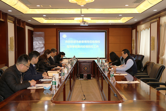 2月5日上午,市教卫工作党委副书记、市教委副主任闵辉,市教委后保处处长张旭,市教委民办处副处长柏丹一行来校检查指导疫情防控及留校学生服务管理工作。董事长钱莹,校长孔凡邨,党委书记李月松,党委副书记、副校长段仁启等校领导陪同检查并参加调研座谈会。