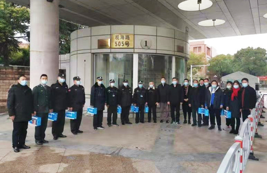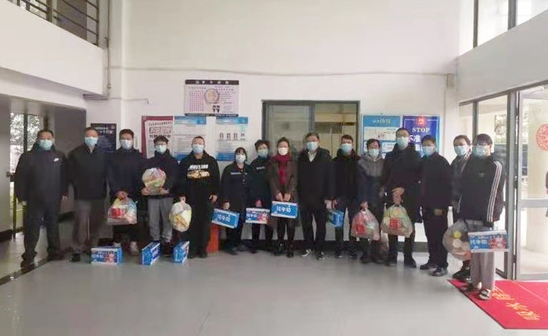 2月12日大年初一上午,学校校长孔凡邨,党委书记李月松,党委副书记、副校长段仁启,党委委员、工会主席、后保处处长张永生,校办党办主任傅建辉以及学生处处长陈瑜等一起到校,看望慰问春节期间仍坚守在学校工作一线的后勤员工和假期留校学生,代表学校董事会和党政领导班子,向他们赠送节日慰问品,并致以新春的祝福。