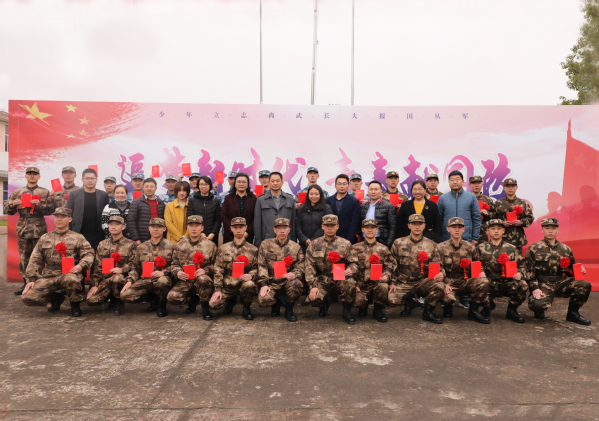 党委副书记、副校长段仁启代表学校向应征入伍学生表示问候,为他们发放慰问品、颁发“入伍通知书”并佩戴光荣入伍红花。他对同学们也提出了殷切期望:大学生作为中国青年的优秀分子,国家宝贵的人才资源,在肩负中华民族伟大复兴历史使命的强军道路上无法缺席,也不能缺席。同学们携笔从戎,充分展现了保家卫国的使命担当,希望大家尽快完成从学生到军人身份的转变,秉持奋斗之志,争取建功军营,把满腔的热情转化为报国之志,奋发有为,学有所用,在强军兴军伟业中积极发挥自己的聪明才智。
