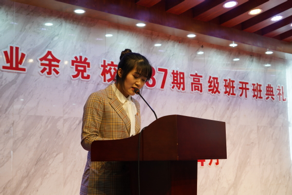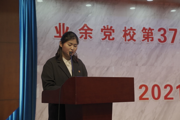 欧洲语言文化学院应用俄语1901班学生孔晓蕾作为优秀学员代表发言。她分享了自己在业余党校的学习心得及收获,鼓励新学员要珍惜党校学习的机会,严格自律,不断加深对党的理论知识的学习,坚定政治立场,提高政治理论水平,加强党性修养,树立远大志向。把握党史学习教育的契机,认真学习党的光辉历史,用党的奋斗历程和优良作风坚定信念、砥砺品格,践行使命。