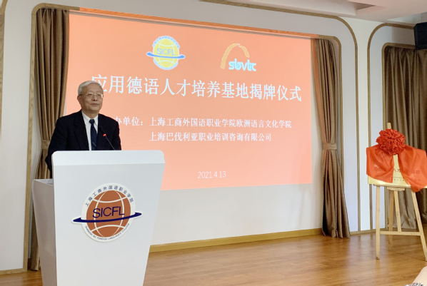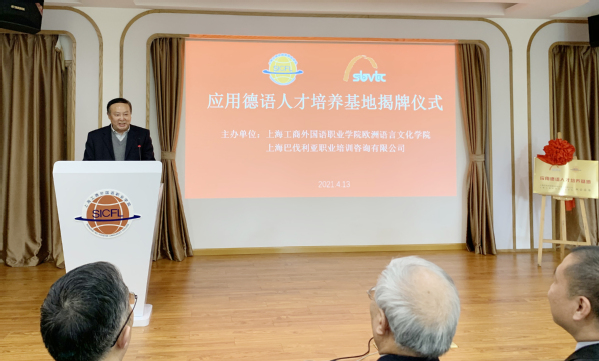 4月13日,应用德语人才培养基地在我校进行了揭牌仪式,党委副书记、副校长段仁启,副校长陈万里,欧语学院院长虞龙发教授,上海巴伐利亚职业培训咨询有限公司陆黎明博士,兄弟院校以及学校二级学院的教师和部分学生代表参加了揭牌仪式。