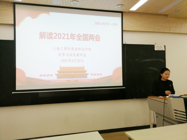 4月20日,本学期《形势与政策》课第二次集体备课会在四号楼概念教室2召开。本次备课会主题为:“解读2021年全国两会”,由形势与政策教研室主任赵雪主持,教研室教师余露为大家分享了备课内容。校党委书记李月松、思政教学部主任沈李、副主任韩伟及形势与政策教研室全体教师出席本次备课会。
