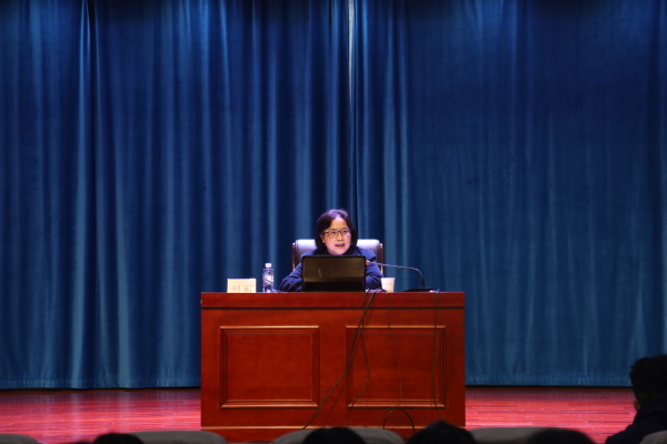 商学院院长刘丽通过对“富而行其德”的陶朱公,“智、勇、仁、强”的白圭,提倡“戒欺”、“真不二价”,讲求“仁”、“义”的胡雪岩三位中国历史上被称为“商圣”的人物讲解,以及对晋商、徽商、浙商、粤商四大商帮的特质和精神的归纳和总结,展示了“以至诚为道,以至仁为德”的商之德善的内涵和理念。用讲故事的方式对我国“三位商圣”和“四大商帮”做出客观评价,通过中西方“商之地位”的对比,阐明法治在商业发展中的重要作用。同时也指出了在社会主义核心价值观的引领和指导下,重塑商业伦理精神的重要性。报告中,刘丽院长还通过列举我国近代著名企业家、政治家、教育家张謇的案例,指出爱国是近代以来我国优秀企业家的光荣传统,更是当代企业家的社会责任,她倡导广大同学要从中华民族优秀人物身上汲取精神养分,转化为建设社会主义现代化强国的无穷力量。