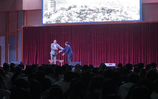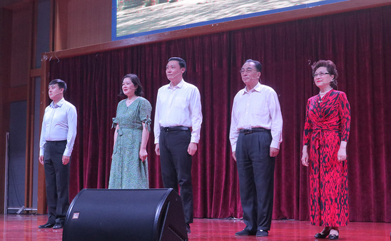 5月25日晚6时,学校思政教学部联合上海民间文艺家协会共同举办的“师生同上思政课 喜迎建党一百年”红色情景剧《寻路》在体育馆隆重演出。校党委副书记、副校长段仁启,思政教学部主任沈李,党委组织部部长傅敏娜,宣传部部长王秋凤,学工部副部长冉蓉,团委书记杨燕玲,各二级学院党总支书记、思政课教师和2020级全体学生3000余人共同观剧。活动由思政教学部副主任韩伟主持。